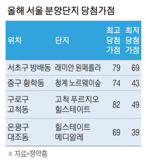 ‘82점’ 청약통장 구로에 등장…분양가 부담에 비강남권도 고가점 몰려
