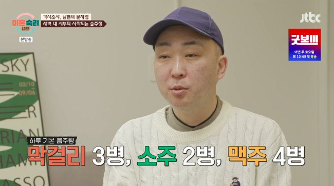 무엇보다 가장 심각한 문제점은 365일 밤낮없이 지속되는 음주였다. 서장훈은 “또 이야기하는데 이혼이 아니라 사별이다. 매일 먹는 사람은 정말 짧고 굵게 살겠다고 얘기하는 거랑 똑같다. 지금은 그나마 크게 안 나왔다. 근데 곧 여러가지 문제가 생길 거다. 무섭게 생각하셔야 한다”라고 꼬집었다.