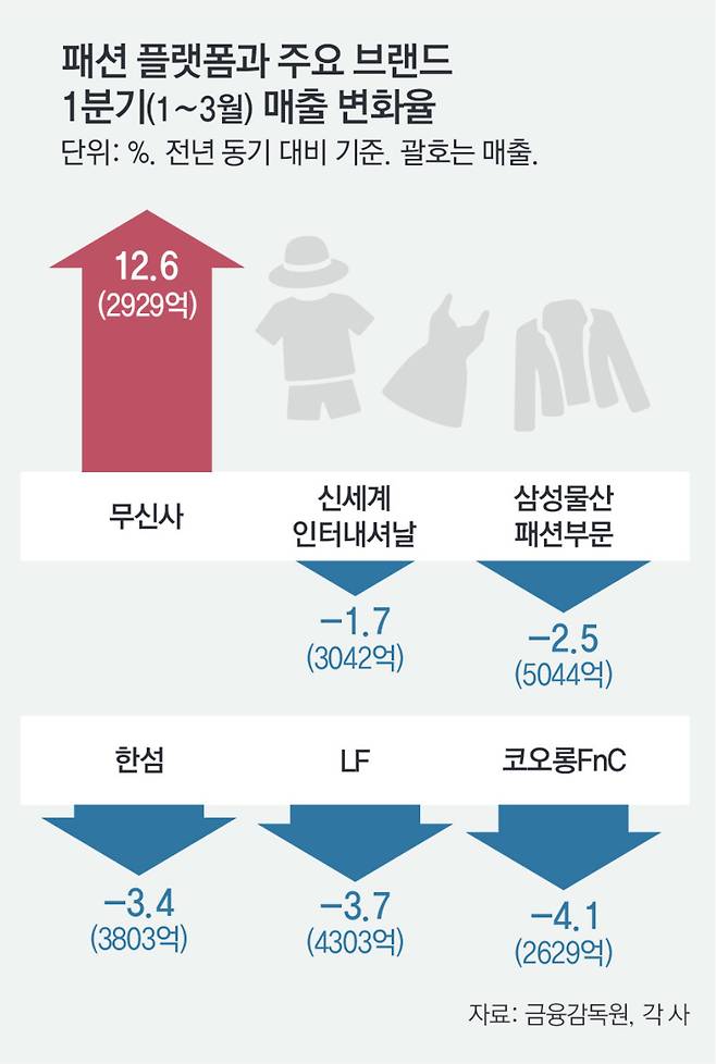 올해 1분기(1∼3월) 의류 판매에서 가성비를 앞세운 플랫폼들이 브랜드 파워를 앞세운 패션 업체들보다 실적이 더 좋은 것으로 나타났다.