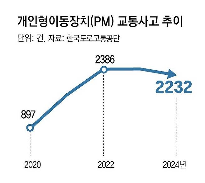 전동킥보드 등 개인형이동장치 사고… 2020년 897건에서 작년 2232건으로
