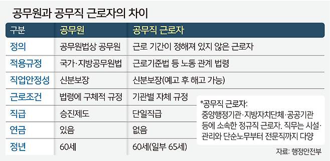 공무직 ‘정년 연장’은 지난해 10월 행정안전부가 중앙부처 중 처음 시작했다. 지자체 중에서는 대구가 처음 도입했고 대전 서구가 뒤를 이었다. 공무직 근로자 고령화와 인구구조 변화에 따른 노동력 부족 문제 등에 대응하겠다는 취지다.