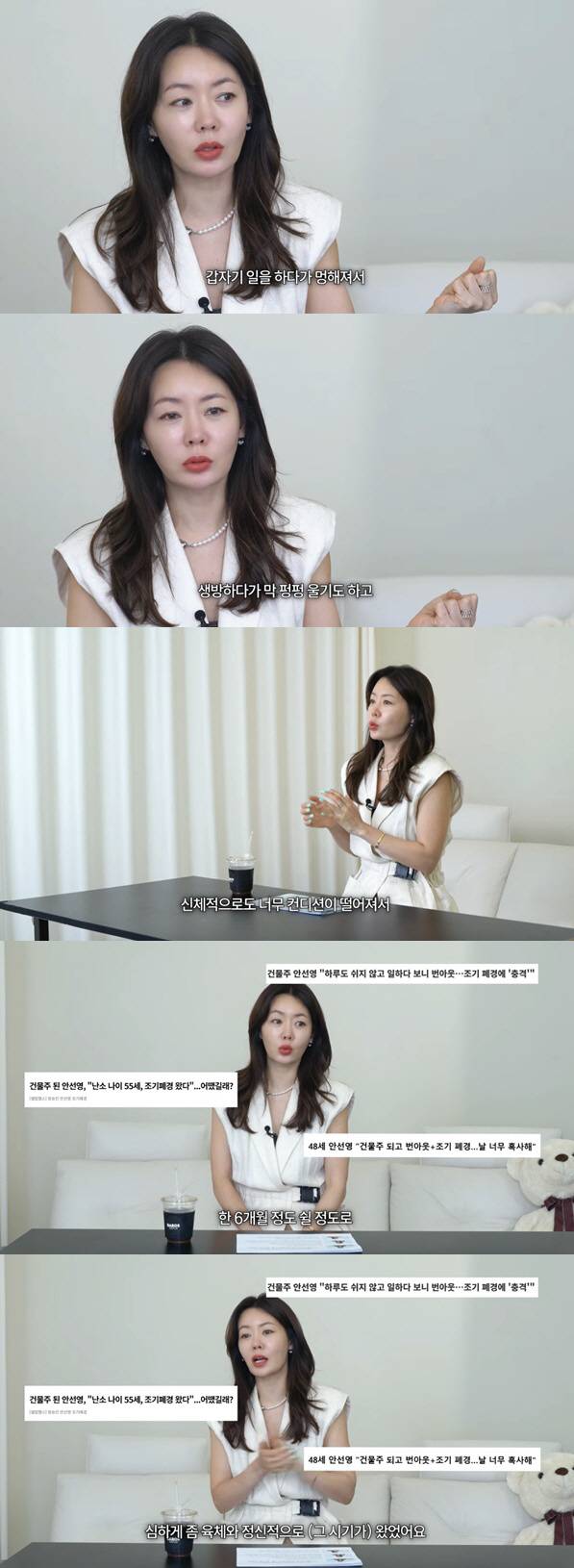 앞서 안선영은 지난해 한 방송에서도 건물주가 되고 스트레스에 조기 폐경이 왔다고 고백한 바 있다.
