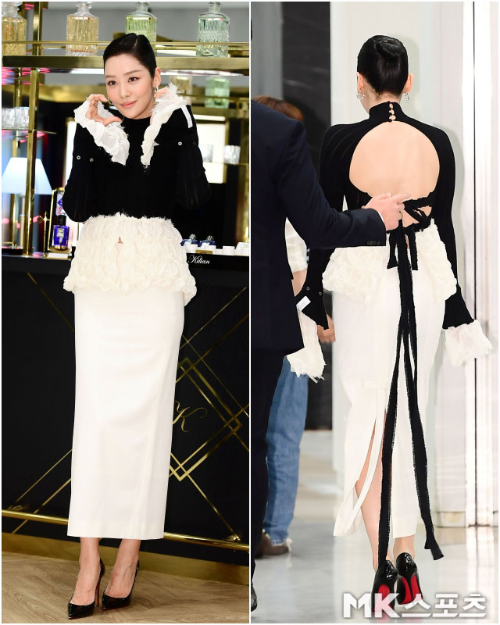특히 주목할 점은 힐 선택. 깊은 와인빛 레드솔이 유리잔을 연상시키는 독특한 구두는 그 자체로 스타일링의 하이라이트가 됐다. 얇은 발목과 곧게 뻗은 실루엣이 드러나며 그녀의 세련된 자기관리를 다시 한번 입증했다.