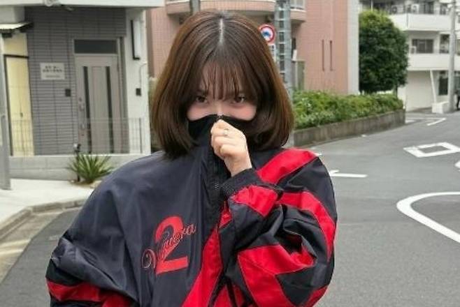 27일 카리나는 개인 채널에 장미 이모티콘과 함께 일본 길거리에서 숫자 2가 적힌 빨간색 점퍼를 입은 사진을 올렸다.