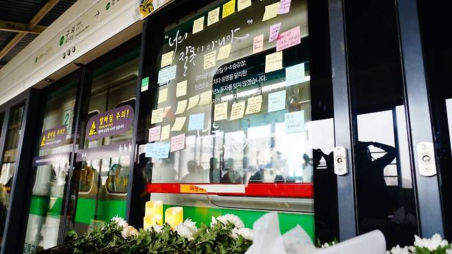 | ▲ 지난 28일 '구의역 스크린도어 사고 9주기-공공교통이 안전한 사회를 위한 다크투어'에서 찾은 구의역의 모습. |