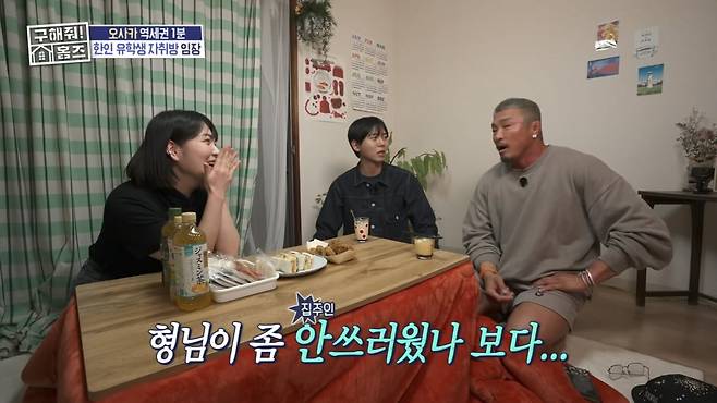유학생은 2년 전 일본에서 요리 공부를 시작했으며 최근 취업을 했다고 밝혔다. 집을 둘러보던 중 추성훈은 TV가 없다는 사실을 알아차렸다.