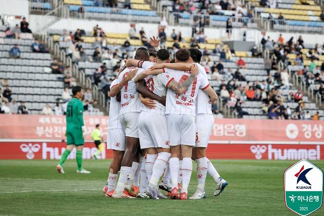 이랜드가 승점 27점으로 2위를 달리고 있는 가운데, 수원(26골)과 전남(19골·이상 승점 25)이 다득점으로 3, 4위를 나눠 가졌다. 한 경기차로 부천(22골), 부산(18골·이상 승점 22)이 5, 6위에 자리했다. 여기까지가 플레이오프권이라고 보면, 아래부터는 거리가 좀 있다. 성남이 승점 18점으로 7위, 충남아산이 승점 15점으로 8위다. 물론 1로빈 밖에 치르지 않았지만, 현재 경기력과 전력차 등을 감안하면, 의외로 플레이오프권 싸움은 일찌감치 결정될 공산이 크다. 때문에 이번 주말 펼쳐지는 2로빈의 출발선, '하나은행 K리그2 2025' 14라운드에서는 기세에서 밀리지 않으려는 5위 부천과 6위 부산의 흐름을 지켜볼 필요가 있다.