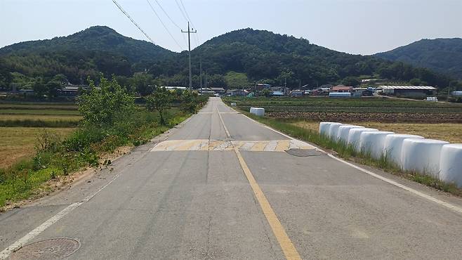 | ▲ 김동수 열사가 나고 자란 임곡마을로 가는 길. 도로 끝에 마을이 자리하고 있다. |