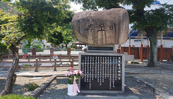 | ▲ 장성 서삼초등학교에 있는 김동수 열사 추모비. 1996년 세워졌다. |