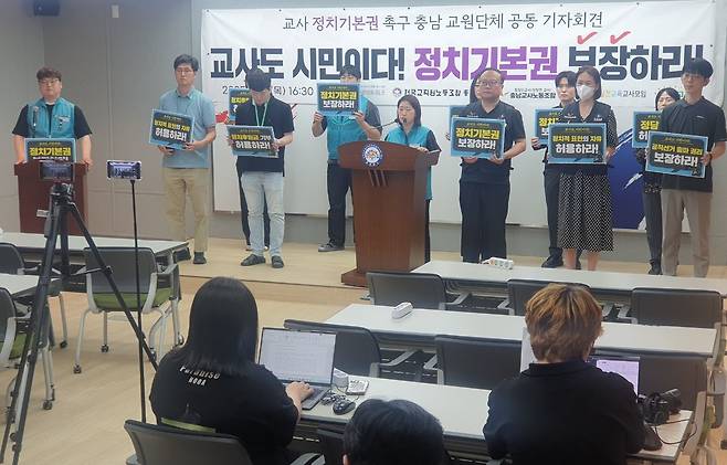 | ▲ 충남의 5개 교사 단체가 29일 충남도청 프레스센터에서 기자회견을 열고 교사의 정치 기본권 보장을 촉구했다. |