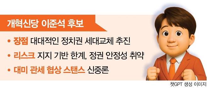 개혁신당은 현재 원내 3석의 소수 정당으로, 이 후보가 대통령이 되면 유일한 지역구 의원 자리를 잃어 원내 2석 정당이 된다.
