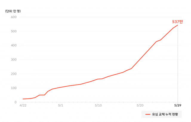 30일 SK텔레콤 뉴스룸에 따르면 전날 20만 명의 가입자가 유심을 교체하면서 누적 교체 가입자는 537만 명으로 늘었다.