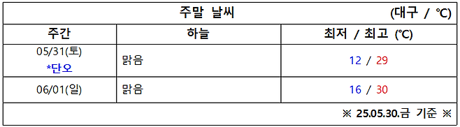 5월 5주 차 대구·경북 주말 ‘날씨 체크’