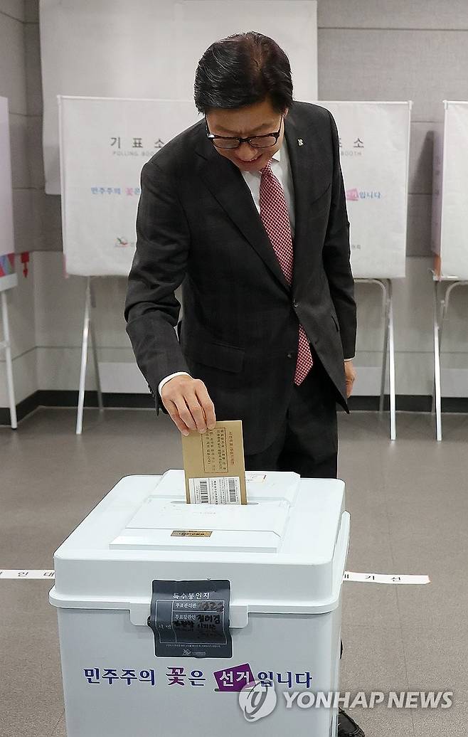 (부산=연합뉴스) 손형주 기자 = 박형준 부산시장이 30일 오전 부산 연제구청에 마련된 연산제2동 사전투표소에서 제21대 대통령선거 투표를 하고 있다. 2025.5.30