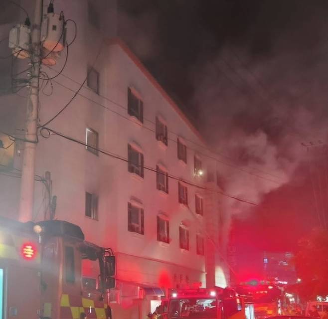 간밤에 벌어진 ‘필사의 탈출’—화재는 2층 객실 일부만 태우고 1시간 30분 만에 꺼졌습니다.