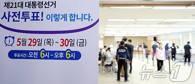 (완주=뉴스1) 유경석 기자 = 제21대 대통령 선거 사전 투표 둘째 날인 30일 전북 완주군 봉동읍행정복지센터에 마련된 사전투표소를 찾은 유권자들이 투표를 하고 있다. 2025.5.30/뉴스1