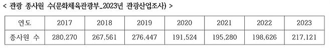 | ▲ 관광 종사원 수 출처_문화체육관광부_2023년 관광산업조사 |