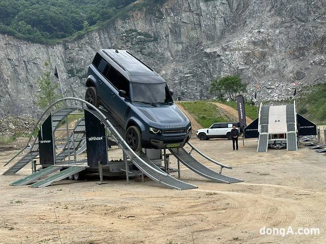 JLR코리아는 이번 데스티네이션 디펜더 행사를 위해 경기도 안성 채석장을 통째로 빌렸다. 이곳에 영국 본사에서 직접 들여온 고난도 구조물(Dynamic Display Equipment)을 설치하고, 땅을 파내 수로를 만들어 웬만한 자동차로는 통과가 불가능한 주행 환경을 조성했다.