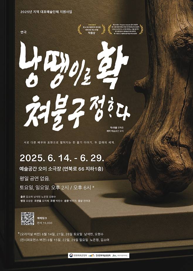 제주 극단 '예술공간 오이(이하 오이)'는 6월 14일(토)부터 29일(일)까지 매주 토·일요일(오후 2시, 6시)에 연극 '낭땡이로 확 쳐불구정 허다'를 공연한다.