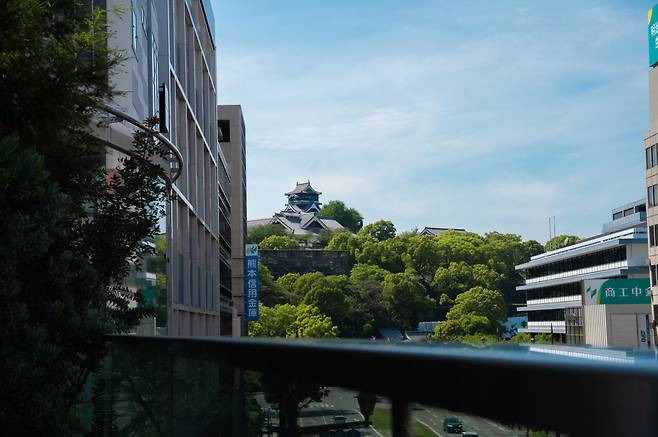 볕이 환히 들어오는 통창 밖으로 나서면 굿디자인상을 받은 '데코보코 테라스'가 여행자를 반긴다. 구마모토의 온화한 날씨를 느끼면서 구마모토성을 한눈에 담을 수 있는데, 밤에는 조명이 켜진 구마모토성도 볼 수 있다.