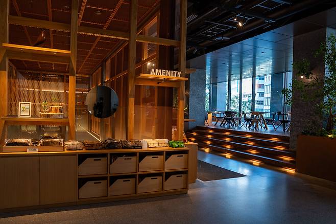 투숙객이 활용할 만한 공간은 3층에 한데 모았다. 체크인·아웃이 가능한 리셉션과 어매니티를 챙길 수 있는 공간이 나란히 자리하고 있다.