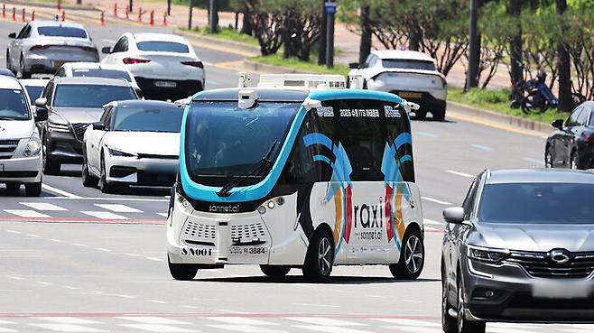 ▲ 지난 26일 경기도 수원시 영통구 수원컨벤션센터 인근에서 자율주행차량이 시험운행을 하고 있다.