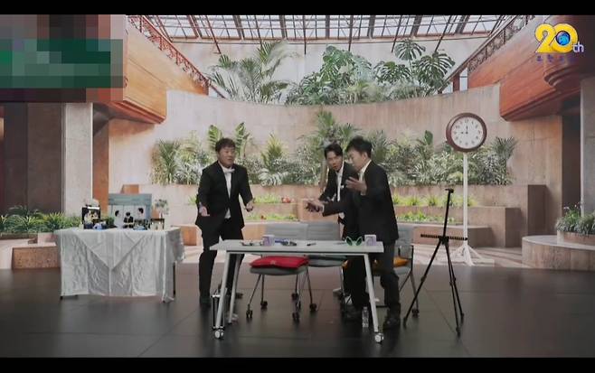 본인이 고정 멤버로 합류했던 '돈가방을 갖고 튀어라' 특집 당시처럼 검은 정장을 입고 등장한 전진을 보고 박명수는 "너 '무한도전' 왜 관뒀지? 왜 복귀 안 했지?"라고 돌직구를 날렸다.