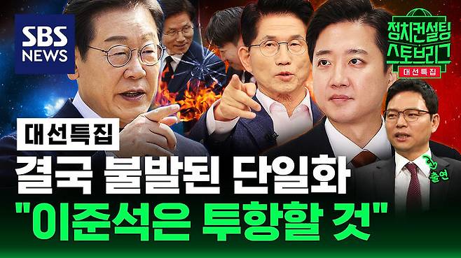 김문수 후보와 이준석 후보의 단일화가 불발되면서 두 후보 모두 각자도생에 돌입한 모습입니다. 권성동 국민의힘 공동선대위원장도 "단일화는 결국 무산됐다"고 선언했는데요. 하지만 민주당은 단일화에 대한 의심을 거두지 않고 있습니다. 이재명 후보는 "이준석 후보가 결국 후보직을 포기하고 내란·부패·갈라치기 연합을 할 것이라 확신한다"는 메시지를 냈죠.