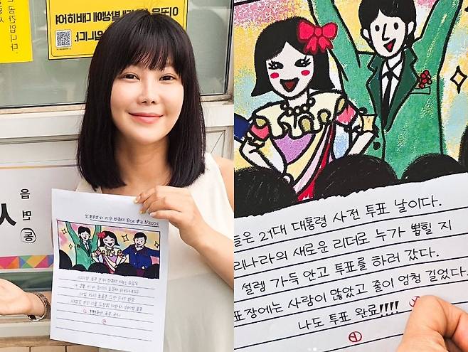 특히 투표 인증을 위해 그림일기 콘셉트의 종이를 챙겨간 모습이 웃음을 자아냈다.