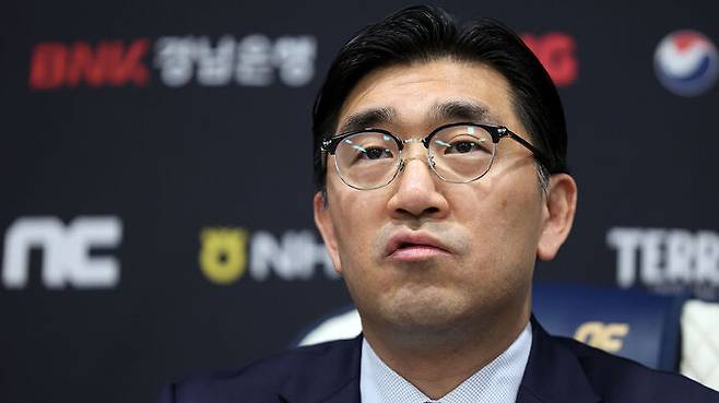 ▲ NC 다이노스 이진만 대표가 30일 오후 경남 창원시 마산회원구 창원NC파크에서 야구장 재개장과 관련한 구단 입장과 향후 대처 방안을 브리핑하고 있다.
