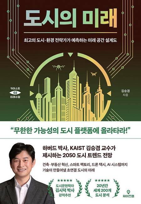 ‘카이스트 미래 수업’ 시리즈의 두 번째 주제로 출간된 이 책은 ‘도시’라는 키워드를 통해 미래 사회의 기술, 산업, 경제, 환경을 통합적으로 바라본다. 이를 통해 ‘이상적인 도시’가 되기 위해서는 단순히 기술 발전뿐만 아니라 인간 간의 '연결성'이 필요함을 강조한다. 저자인 김승겸 카이스트 교수는 20년간 200개 도시를 보고 직접 경험하며 해외 각지에서 신도시, 공원, 관광단지를 설계한 경험자다. 그는 도시를 깊숙이 바라보며 디지털 기술 발전으로 인해 속도가 빨라졌지만, 그 이면에는 통신망 확장과 데이터센터 증설로 에너지 소비량이 늘어나는 환경 관련 문제가 있음을 통찰한다. 인공지능(AI) 도시로 발전하는 과정에서 동등한 혜택을 받지 못하는 약자의 모습도 놓치지 않는다. 도시의 빛과 그림자를 동시에 바라보며 어떤 도시가 ‘좋은 도시’인지 끊임없이 고민하고 성찰한 시간을 책에 담았다.
