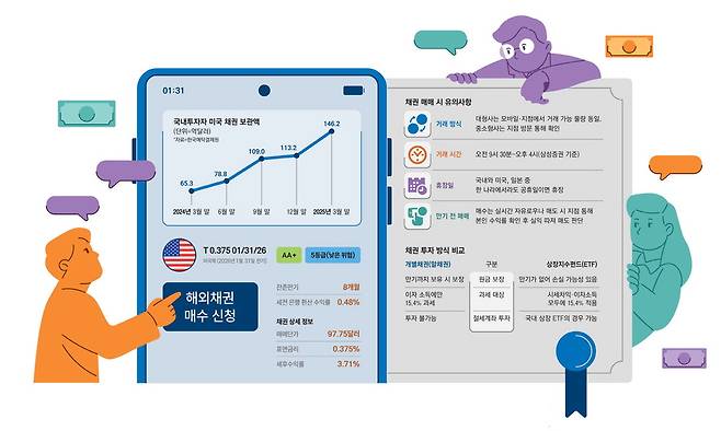 증권사 애플리케이션(앱)을 스마트폰에 깔고 미 국채 단기물을 실제 매수하기까지 1시간이 걸렸다. 사실 이날 하루 전에 다른 중소형 증권사를 방문했다가 허탕을 친 것까지 감안하면 이틀이 걸린 셈이다. 26일은 미국 시장 휴장일(메모리얼데이)이어서 거래가 불가능했다.