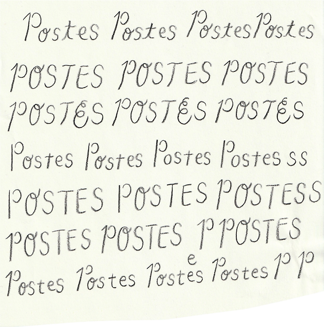 브랜드의 세계관이 분명했기에 ‘포스테스(Postes)’라는 네이밍은 비교적 빠르게 정해졌다. ‘Postes’는 프랑스어로 ‘우체국’을 뜻하는 단어로, 우리가 전하고자 했던 메시지인 ‘향기로 쓰는 편지’를 가장 간결하면서도 시적으로 담아낼 수 있는 표현이라고 생각했다. 조금 고민이 되었던 부분은 한국어 표기였다. 실제 프랑스어 발음에 가깝게 쓰자면 ‘포스트’에 더 가깝지만, 브랜드명으로 사용하기엔 발음이 익숙하지 않고 어감도 다소 딱딱하게 느껴졌다. 그래서 보다 부르기 쉽고 부드러운 인상을 주는 ‘포스테스’라는 표기를 선택하게 되었다. 소비자들에게 정서적으로 더 친근하게 다가가는 이름이 되기를 바랐기 때문이다. 브랜드의 모든 서체를 손글씨나 타자기체로 통일한 것 역시 ‘손으로 쓴 편지’라는 콘셉트를 고스란히 반영한 결정이다. 폰트 디자인 작업은 모두 사키(Saki) 작가와 협업했는데, 그녀의 타이포그래피 작업을 처음 봤을 때 ‘아, 이거다!’라는 확신이 들어 로고 디자인을 정식으로 의뢰하게 되었다.