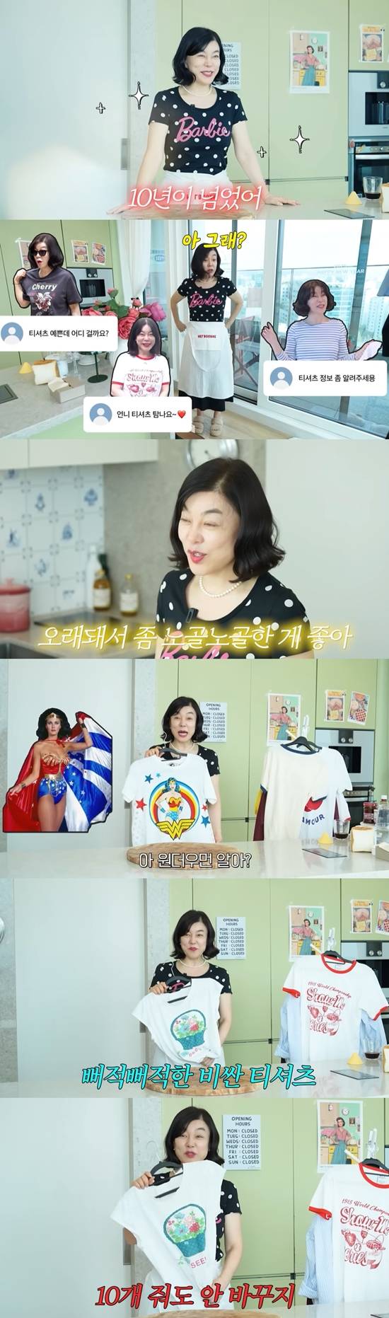 배우 최화정이 오래된 티셔츠들을 아낀다고 밝혔다.