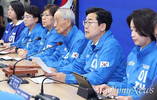 | ▲ 박찬대 더불어민주당 총괄선거대책위원장이 지난 28일 서울 여의도 중앙당사에서 열린 중앙선거대책위원회의에서 발언하고 있다. |