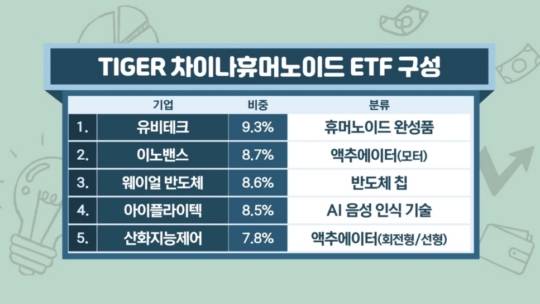 유비테크를 제일 높은 비중으로 투자를 하는 가운데 휴머노이드 로봇에 들어가는 각종 액추에이터를 생산하는 선전 이노밴스, 그리고 음성 인식을 할 수 있는 기술을 갖고 있는 아이플라이텍, 그리고 휴머노이드 반도체 관련 윌 세미컨덕터 등을 편입함으로써 전체 밸류체인에 대해 균형 있게 포트폴리오가 설계돼 있습니다.