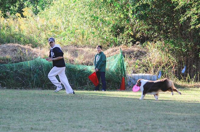 | ▲ 함께 즐기는 독스포츠 일본 반려견 훈련 경기 대회에서 디스크독 부분을 즐기고 있는 모습이다. 반려견 선진국일수록 이런 개들과 즐기는 훈련 종류는 매우 다양하다. |
