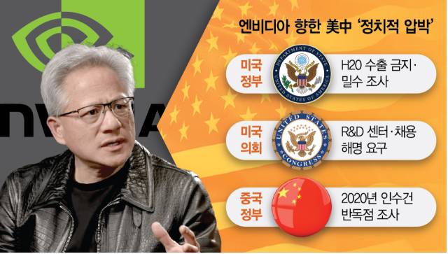 도널드 트럼프 미국 행정부가 엔비디아 중국 전용 인공지능(AI) 칩셋 수출을 막아선 데 이어 미 의회도 중국 투자에 대한 ‘해명’을 요구하고 나섰다. 중국 연구개발(R&D) 센터 확장과 채용이 AI 핵심 기술 유출로 이어질 수 있다는 우려에서다. 중국 또한 엔비디아를 반독점 조사로 압박하고 있는 가운데 미중 AI 패권 분쟁 사이에 낀 젠슨 황 최고경영자(CEO)는 고민이 깊어지고 있다.