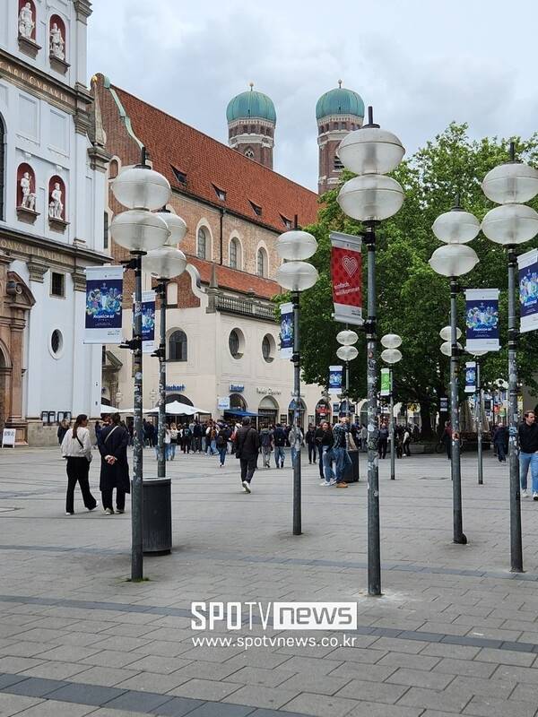 성당 밖에서는 다른 세계가 또 보였다. 일찌감치 뮌헨에 도착한 것으로 보이는 응원단들이 한쪽에 모려 병맥주를 상자로 가져와 쌓아두고 마시며 즐기는 모습이었다. 낮부터 취기에 오른 이들이었지만, 크게 소리를 지르는 모습은 아니었다.