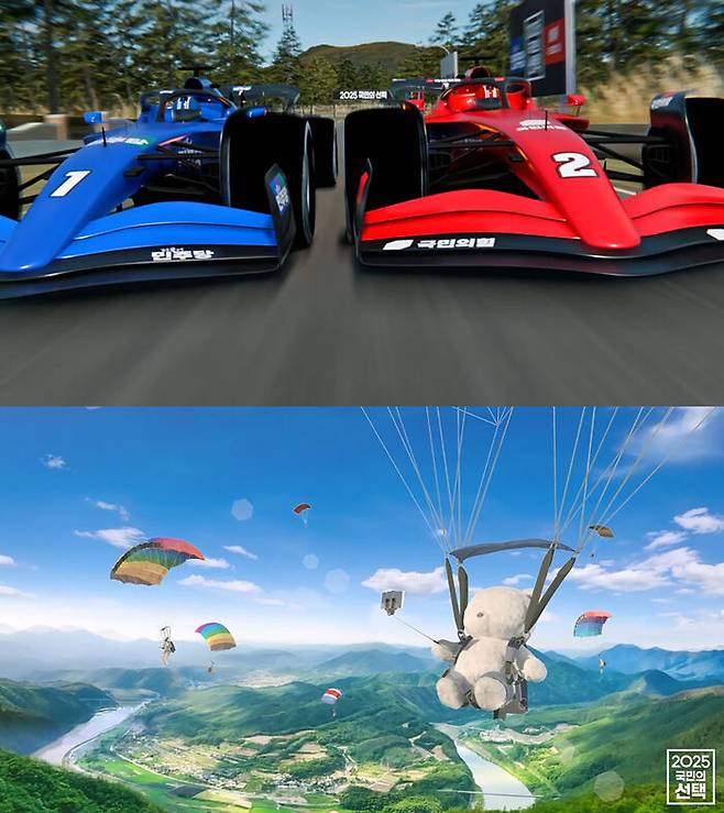 이 밖에도 민심을 잡기 위해 레이싱 차량에 올라탄 후보들이 불꽃 튀는 경주를 벌이는가 하면, 화려한 조명 아래 펼치는 후보들의 현란한 '스피닝' 몸동작들도 만나볼 수 있습니다.