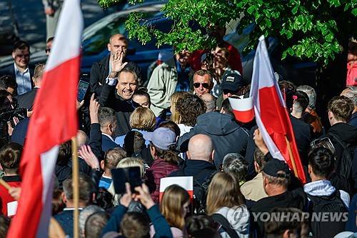 epa12144753 Head of the Institute of National Remembrance (IPN) and candidate in the 2025 presidential elections, Karol Nawrocki, meets with local residents in Domostawa, Poland, 30 May 2025. Nawrocki will face Rafal Trzaskowski in the second round of Poland's presidential runoff scheduled for 01 June, after neither candidate secured more than 50 percent of the vote in the first round on 18 May. EPA/Darek Delmanowicz POLAND OUT