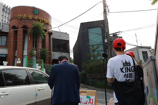 | ▲ 21대 대통령 선거 사전투표 둘째날인 30일 서울 서대문구 구 신촌동주민센터에 마련된 신촌동사전투표소에서 부정선거를 주장하는 시민들이 스마트폰으로 영상을 촬영하고 있다. |