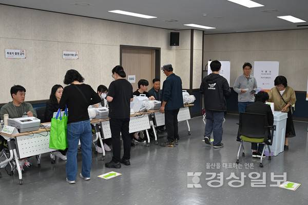 제21대 대통령선거 사전투표 둘째 날인 30일 울산 중구 우정동행정복지센터 사전투표소에서 유권자들이 투표에 참여하고 있다. 김도현기자 do@ksilbo.co.kr