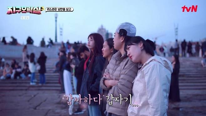 이후 네 사람은 툭툭이를 타고 10분 거리에 있는 포르타스 두 솔 전망대로 향했다. 이곳은 '태양의 문'이라는 이름처럼 노을 맛집이라고. 낭만적인 풍경에 이은지는 "이게 무슨 일이냐"라고 말했고, 미미는 "누구 만나긴 하겠다"라며 설렘을 드러냈다.