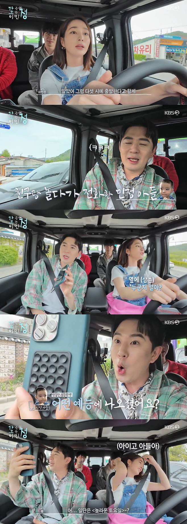 정남매는 첫 게스트로 나온 배우 이준영과 강원도 삼척의 산골마을로 향했다. 이민정은 차로 이동하다가 아들에게 전화를 받았다.