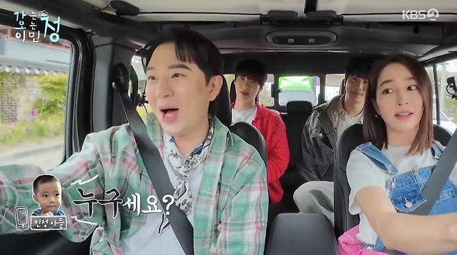 이후 차로 이동을 하던 중 이민정은 아들의 전화를 받았다. 이민정은 붐을 가리키며 "옆에 삼촌 누군지 아냐"고 물었다. 붐은 "붐이에요"라고 유행어를 선보였지만, 아들은 "붐이 뭐냐"라며 시큰둥하게 반응했다.