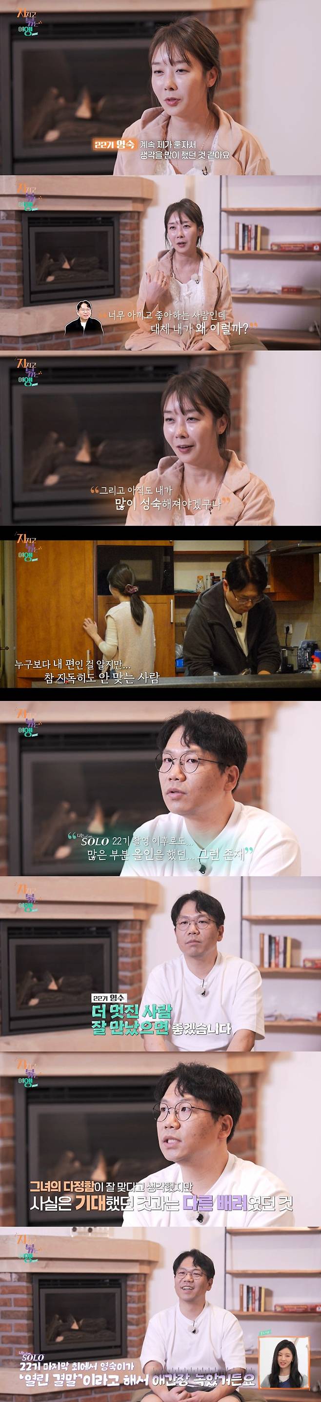 이어 여행 기간 동안 짜증을 내기도, 불평을 드러내기도 하며 22기 영수와 부딪혔던 여행에서 "역시 사람은 어느 정도 거리가 필요하구나. 진짜 아직도 좀 많이 성숙해져야겠구나"라는 깨달음을 얻었음을 고백했다.