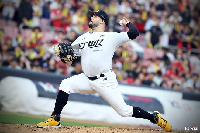 (엑스포츠뉴스 수원, 유준상 기자) KT 위즈 외국인 투수 엔마누엘 데 헤이수스가 홀로 7이닝을 책임지면서 팀의 기대에 부응했다.