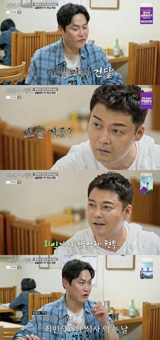 전현무와 김성균은 지난 2012년부터 인연을 이어오고 있다며 남다른 친분을 과시했다. 곽준빈이 두 사람의 인연에 대해 묻자 전현무는 “아나운서로서 마지막 해였다. ‘남자의 자격’할 때 경규 형님이 최민식 형님이랑 같은 학교 나와서 친했다. 그때 ‘범죄와의 전쟁’ 시사회 간 거다”라고 이야기했다.