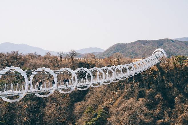 2024년 12월25일에 개방한 따끈따끈한 신생 철교. 폭 2m, 연장 201m 규모의 보행 전용 다리로, 철원군 갈말읍 군탄리와 포천시 관인면 냉정리를 연결한다. 철원의 상징인 두루미와, 비롯한 다양한 철새들이 머무는 지역적 특성을 반영해 두루미교로 이름 지었다. 동글동글한 링 형태의 구조물이 연속된 모습이 두루미의 긴 모가지를 연상하게 하기도 한다. 실제로 철새가 철원평야를 찾는 가을과 겨울에는 두루미 떼를 쉽게 볼 있다고.